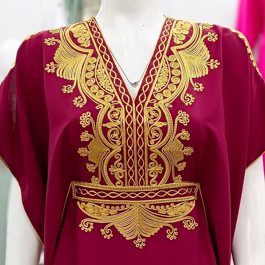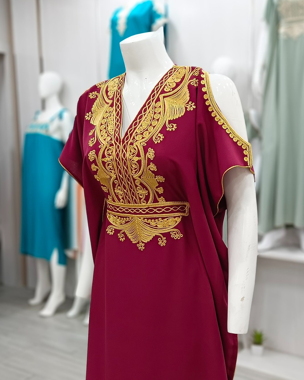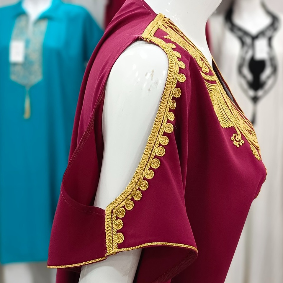 جبة فراشة عنابية أنيقة بتطريز ذهبي فاخر، تصميم واسع ومريح للمناسبات الخاصة و اللباس اليومي